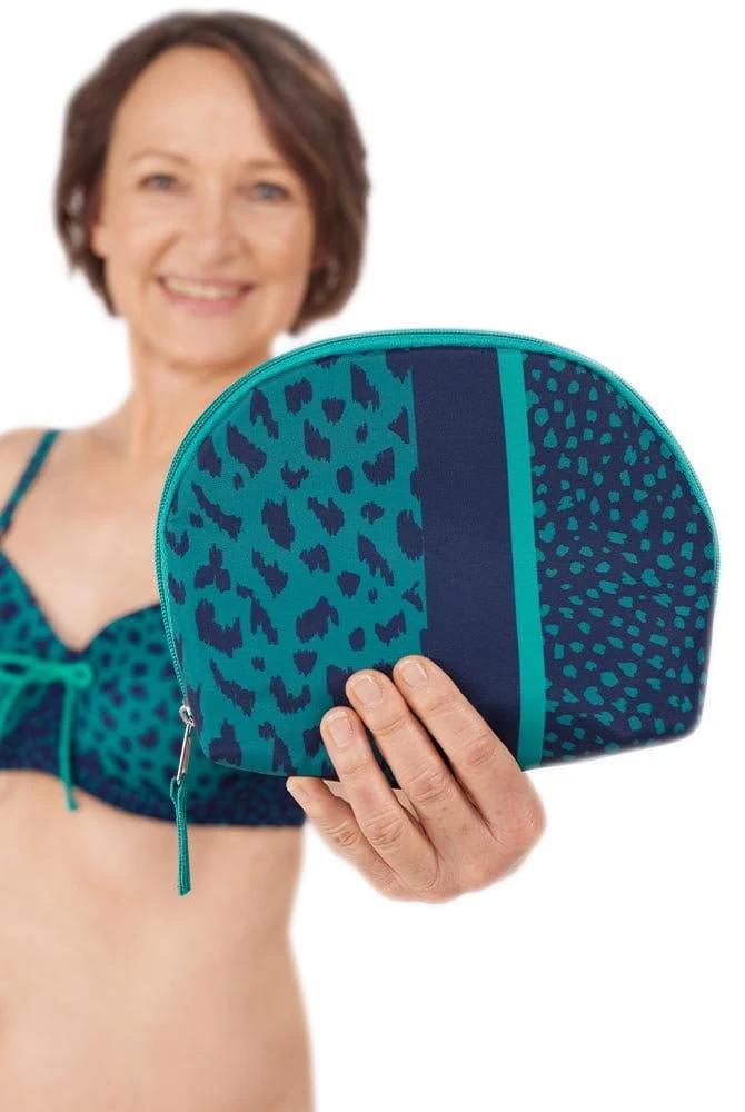… ist Ihr unverzichtbarer Begleiter für den Badeausflug. Passend zur Badekollektion oder zu schlichtem Jeanslook, mit Kosmetiktasche Manila von Amoena sorgen Sie für ein modisches Accessoires. Durch einen Reißverschluss ist in der Tasche alles sicher verstaut und im diskreten Innenbeutel sind kleinere Utensilien bestens aufgehoben. Mit einem feuchten Tuch kann die funktionale Kosmetiktasche Manila bei Bedarf einfach abgewischt werden.