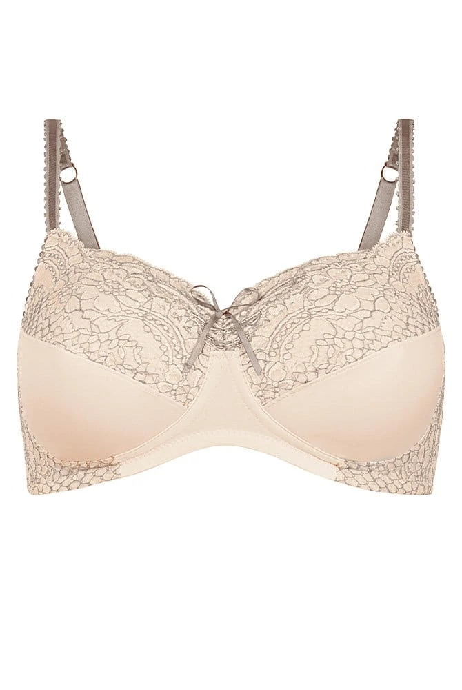 Prothesen-BH Alina überzeugt ohne Bügel, mit zarter, femininer Spitze in wunderschöner zarter Kombination harmonierender Farben. Der subtile zweifarbige Effekt an den oberen Cups, dem Ausschnitt und den Seiten verleiht BH Alina eine verführerische Note.