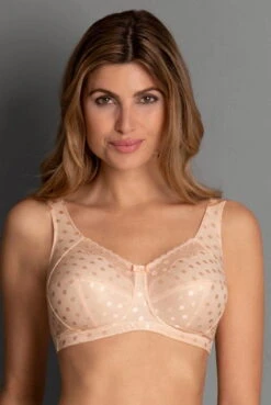 Die hochwertige, atmungsaktive Jacquard-Strukturware liegt angenehm weich auf der Haut, während ein funktionales Tüllfutter und breite, gepolsterte Komfortträger stabilen Halt geben und die Schultern und Nackenbereich entlasten.
