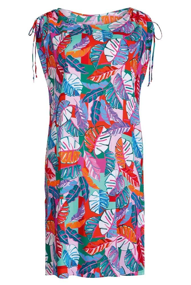 Mit einer gelungenen Farbkombination sticht unser Strandkleid Marajo sofort positiv ins Auge! Das aufregende Tropik-Design ist sowohl am Strand als auch in der City ein echter Eye-Catcher. Die seitlichen Schlitze bieten viel Bewegungsfreiheit und mit den Raffungen an den Schultern lässt sich das tropische Topic-Beachaccessoire zu verschiedenen Styles ergänzen. Praktische Eingriffstaschen an den Seiten bieten viel Platz für kleine Urlaubsouvenirs.