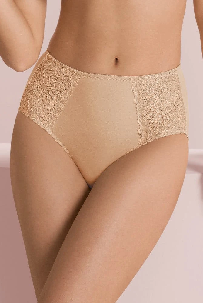 Florale seitliche Spitzeneinsätze beim Havanna Taillenslip bekommen durch Unterlegung von luftig leichtem Tüll einen sehr femininen Look. Taillenslip Havanna in höherer Schnittform ist sehr angenehm, sorgt für eine schön Figur und betont die weiblichen Kurven.